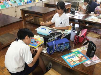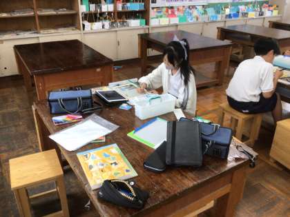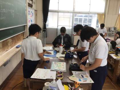 5年生の図工です。 もうすぐ、パズルの完成です。