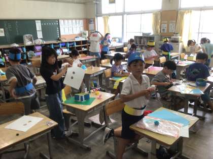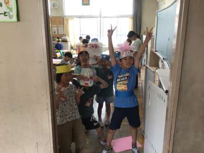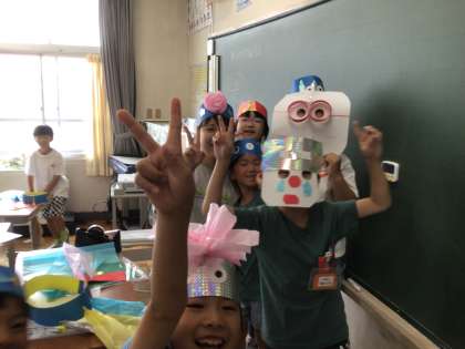 2年生は図工で、お面を作りました。