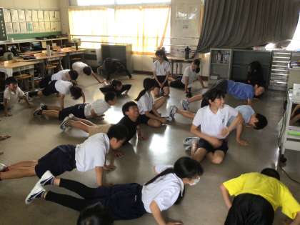 6年生の体育です。ストレッチ運動をしています。