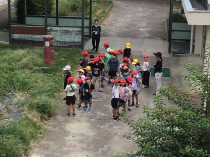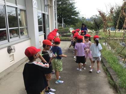 1年生、2年生の生活科です。1年生はシャボン玉で遊びます。