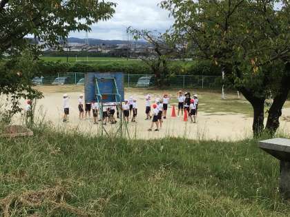 4年生が運動場で体育をやっています。
