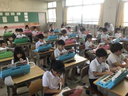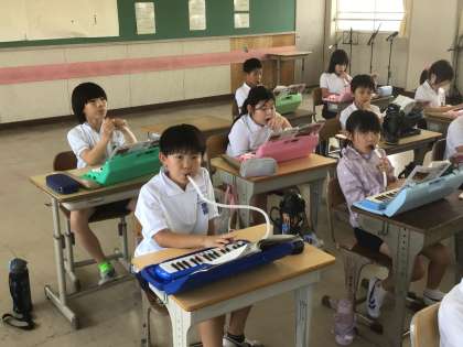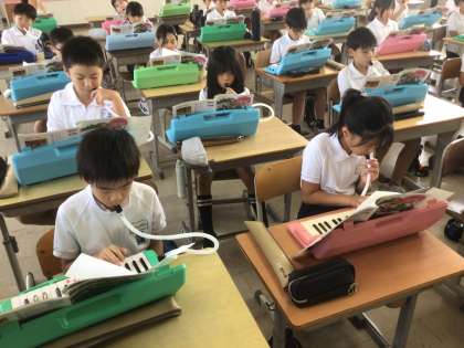3年生の音楽です。鍵盤ハーモニカの練習です。
