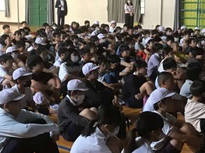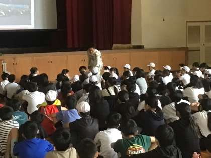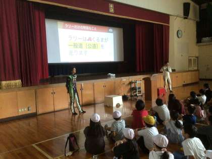 ラリー教室前半は、5・6年生がラリードライバーさんからラリーについてのお話を聞きました。