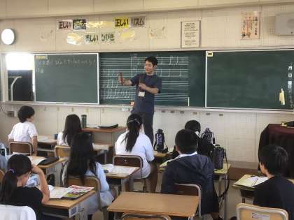 5年生の音楽です。いろいろな打楽器に挑戦します。