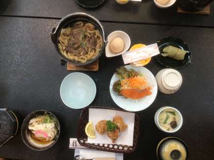 夕飯です。奈良県特産の三輪素麺と柿の葉寿司もついています。