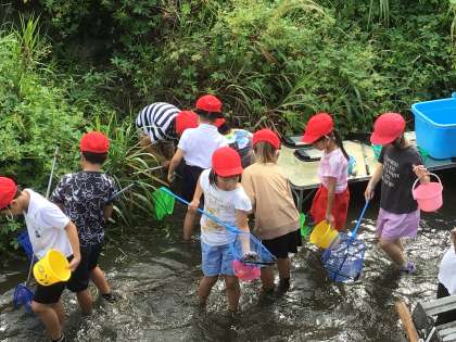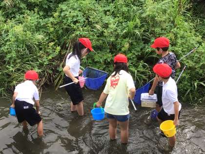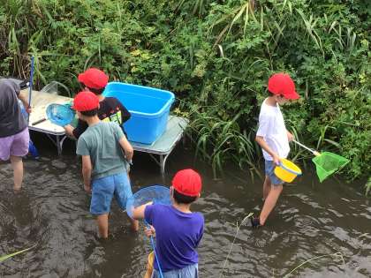 家下川探検の様子です。 いろいろな川の生き物を捕まえることができました。