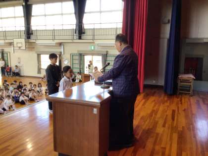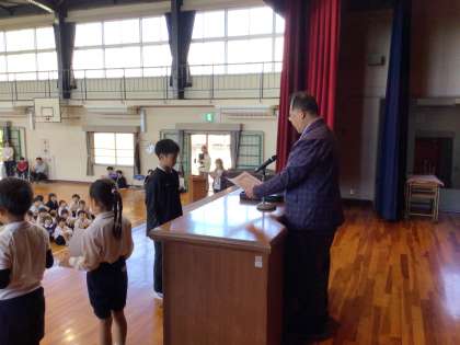 夏休みの書いた作文・詩の伝達表彰です。