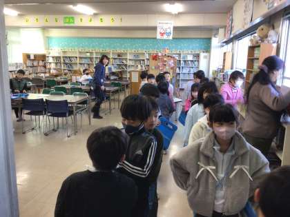 2年生は図書館で読書をしました。