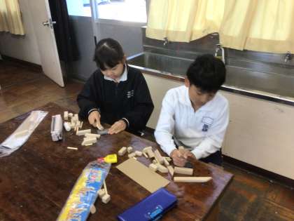 4年生の図工です。のこぎりに挑戦です。