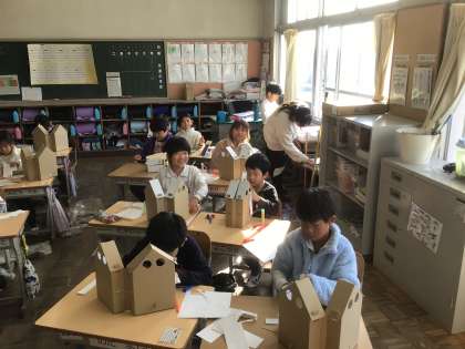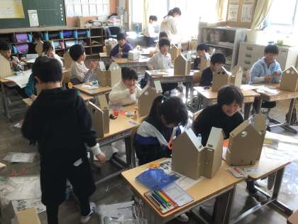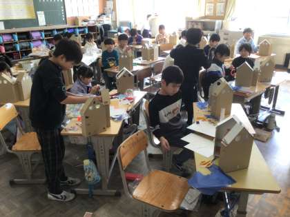 2年生の図工です。ステキなお家を作っています。