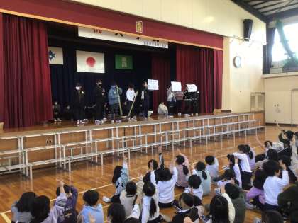 環境・美化委員会の発表です。清掃についてのクイズを出しました。