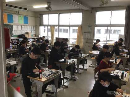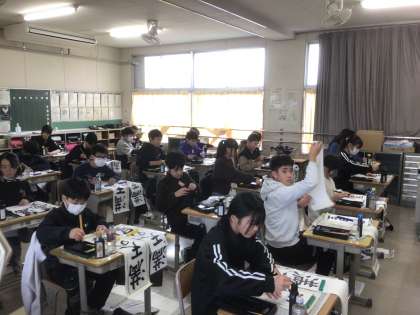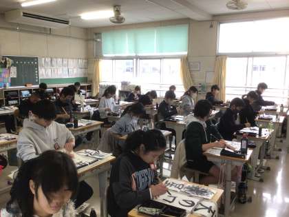 今日は全校で書き初めを行いました。 6年生の様子です。