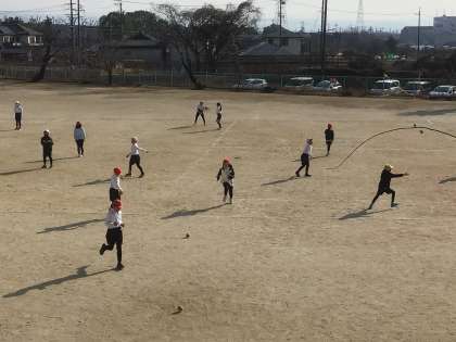 4年生の体育です。 運動場でボール投げです。 今日はとてもいい天気です。