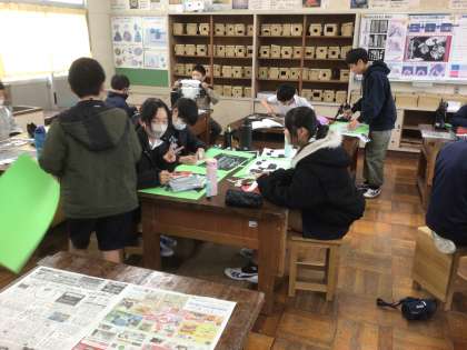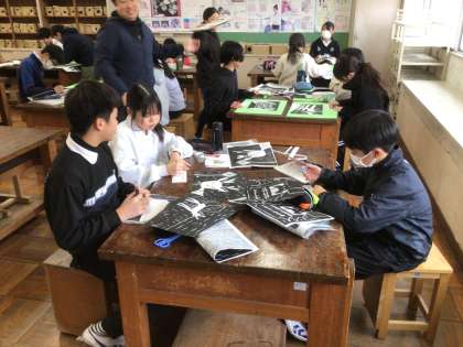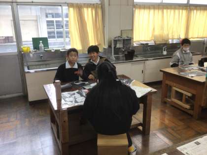 6年生の図工です。版画をしています。