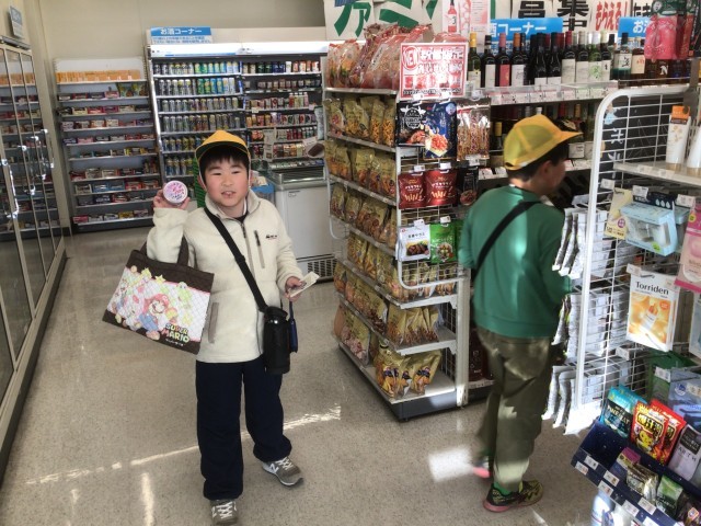 6組の子たちが、生活単元の一環として、学区のコンビニで買い物をしました。
