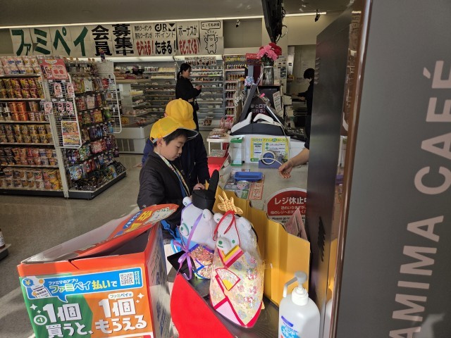 6組の子たちが二度目の買い物をするために、学校の近くのコンビニに出かけました。