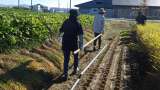 刈り取った稲を、みんなで協力して稲架掛けしていきます。 この日は素晴らしい天気で...