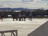 2年生の競技はフラフープリレーでした。 フラフープの輪の中に入り、40メートルを...