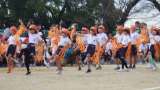 低学年のダンスはyosanoi のアドベンチャーに合わせて、カラフルなポンポンと...