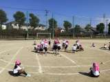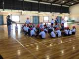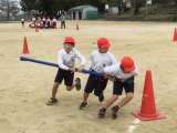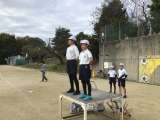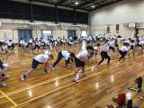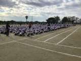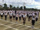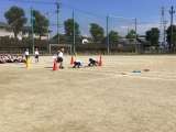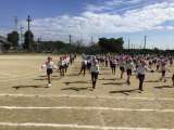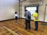 5年生の体育です。 体育館で、バレーボールを行いました。