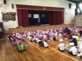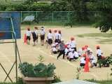 1年生の体育の授業の様子です。 今日は暑くなく、元気よく体育をします。