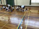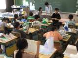 3年生の理科です。自分が作った車を扇風機で動かす実験をしています。