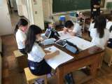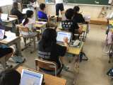 6年生はタブレットを使って、社会科の発表です。
