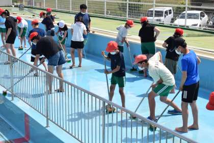 5・6年生がプール清掃を行いました。