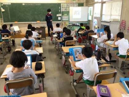 6月8日(水)4年生がタブレットを用いた学習に取り組んでいる様子です。4年生だけでなく、他の学年も学習の中でタブレットを活用しています。
