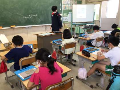 4年生がタブレットを用いた学習に取り組んでいます。