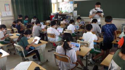 高学年がプログラミングについて学んでいます。 公開日 2022/06/22 更新日 2022/06/22 各学年から 6月20日(月)4年生から6年生までの高学年がクラブの時間にプログラミングについて学びました。写真は6年生の様子です。
