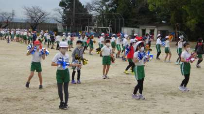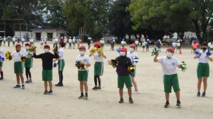 10月13日(木)3・4年生が運動会練習に取り組みました。写真は表現活動の練習の様子です。本番に向けてがんばっています。