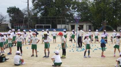 10月13日(木)1・2年生が運動会練習を行いました。1・2年生の競技種目は、玉入れです。自分たちのチームを応援する声が運動場に響いていました。