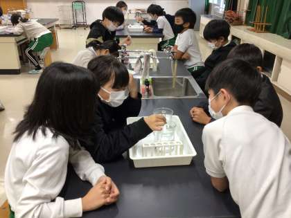 12月15日(木)に行った4年1組の理科授業「ものの温度と体積」の様子です。全体で課題を確認した後、グループごとに実験を行い、課題解決に向けて話し合いました。