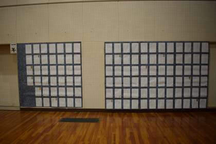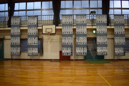 1月16日(月)地域学校共働本部ボランティアさんに手伝っていただき、校内書き初め展の準備ができました。19日(木)の授業参観で保護者の皆さんに公開します。