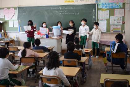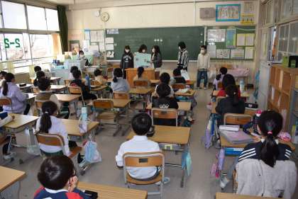 2月8日(水)4年生が総合的な学習で学んだこともとに、ゴミの分別方法について2年生に伝えました。