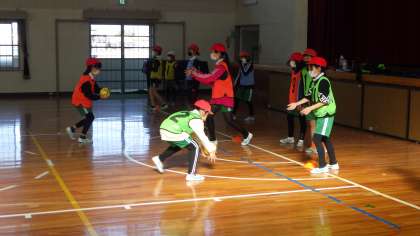 2月9日(木)5年生が体育の授業で外部講師からハンドボールについて学びました。楽しい雰囲気で取り組みました。