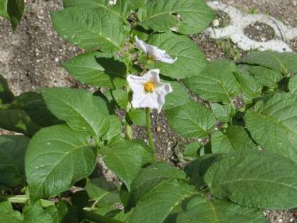 畑ですくすくと育っているジャガイモには、花が咲き始めました。(写真下)ジャガイモがとれる日が待ち遠しいです。