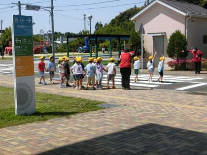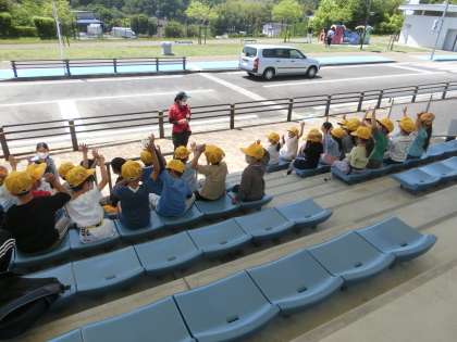 学習の最後に、全員で大きな声で「道路には、飛び出しません」と学習センターの方との約束をしました。