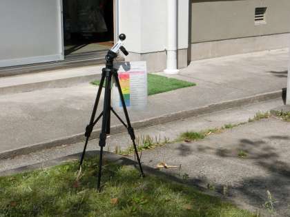 本稿では、熱中症指数を測定しています。(写真下)お昼の放送では、保健委員が帽子の着用や水分補給のよびかけを行い、熱中症対策にかかわる活動を行っています。