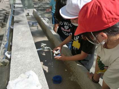 今日は、ツルレイシの種まきをしました。種をまく穴の深さや水やりの量などを教え合っていました。ツルレイシの実がなるまでに、どのような変化が見られるかを観察していきます。