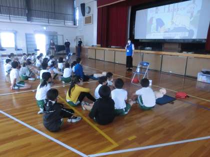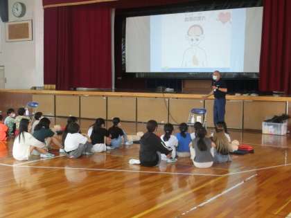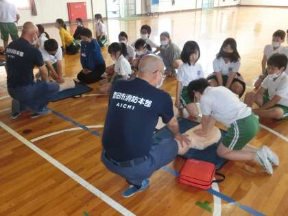 5年生が、豊田市消防本部の方から、いざというときに命を助ける方法を学びました。