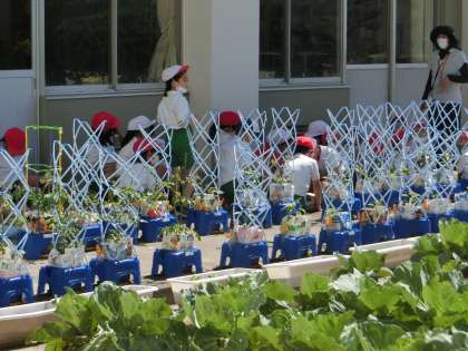 今日の授業では、野菜の生長の様子を観察して、気づいたことを発表していました。