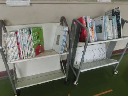 授業になると、必要な学級がその本を教室に運んで学習しています。