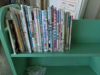 廊下に、ジャンルごとに集められた本が置かれています。野菜や昆虫、酪農や乳製品、国語辞典など授業内容に合わせた内容の図書を司書さんが、集めてくださっています。