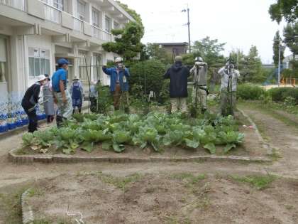 毎週火曜日に竹ボラさんが来校してくださり、活動をしていただいています。今日は、畑の手入れをしていただきました。