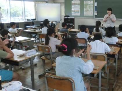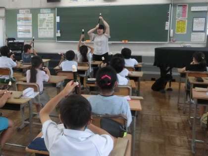 1回目のリコーダーの授業は、講師の方をお招きして、持ち方や音を出すときの息遣いなどを教えていただきました。