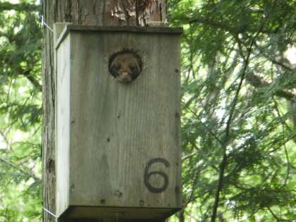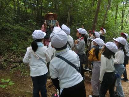 森にすむ動物の話も聞かせていただきました。お話を聞いているときに、巣箱から顔を出しているムササビを見ることができたクラスもありました。