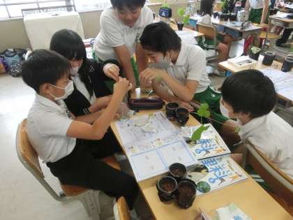 5年生の理科では、メダカとともに植物の成長についても学んでいます。