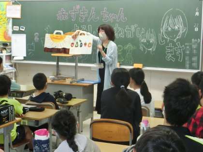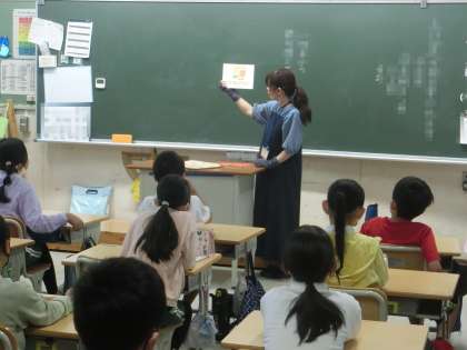物語を聴くときは集中し、読み聞かせの始めと終わりには、元気な声であいさつをするというその場に応じたふるまいができています。歓迎の言葉が黒板に書かれている学級もありました。
